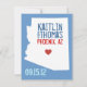 Anpassa den här stadsspecifika spara datumkortet. Klicka bara på knappen "anpassa" för att flytta hjärtat till din stad i Arizona och justera namn efter behov. Glöm inte matchande frimärke: