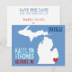 Anpassa den här stadsspecifika spara datumkortet. Klicka bara på knappen "anpassa" för att flytta hjärtat till platsen för din stad i Michigan och justera namn efter behov. Glöm inte matchande frimärke: