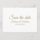 Spara datum, anpassad text elegant bröllopsannonseringskort. falskt guldfont text, vit bakgrund