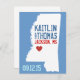 Anpassa detta stads-specifika spara datum-kort. Klicka bara på "anpassa"-knappen för att flytta hjärtat till platsen för din stad i Mississippi och justera era namn efter behov. Glöm inte de matchande stämplarna: