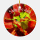 Spara datum anpassningsbar röd blomma blommar julgransprydnad keramik