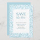 Spara datum inbjudan i ett akvamarinblått mosaikmönster.