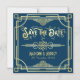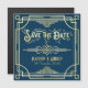 Spara datum Art Deco Gatsby Glamor Guld Blue Magnetisk Inbjudningskort