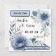 Dammig blå blommig design med guldram är perfekt för en vår- eller sommarbröllop och vacker sätt att tillkännage din stora dag.