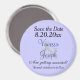 Elegant Spara datum. Vacker blåblomma med brud och brudgummens namn i mörkare lila. Anpassa namn och datum för bröllopet. Vacker att skicka till era bröllopsgäster att fästa på deras kylskåp eller annan magnetisk yta som en trevlig påminnelse om det kommande bröllopsdatumet. Design av TamiraZDesigns.