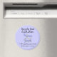 Elegant Spara datum. Vacker blåpetunia med brud och brudgummens namn i mörkare lila. Anpassa namn och datum för bröllopet. Vacker att skicka till era bröllopsgäster att fästa på deras kylskåp eller annan magnetisk yta som en trevlig påminnelse om det kommande bröllopsdatumet. Design av TamiraZDesigns.