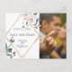 SPARA DATUMET | Lägg till ditt favoritfoto till det här dammiga ro-vykortet för blommigt av vattenfärg för bröllop spara datum - innehåller även sage grey, hallon och blomknoppar av blek - tredubbla guld diamantformen ramar dina uppgifter. Anpassa text, teckensnitt stil, färg och storlekt. Originalteckningar skapat för BarefootBride™ av © WhimsicalArtwork™ - Detta ingår i en komplett Bröllop Stationery Suite med matchande bröllop, babydusch och andra händelsematerial.