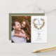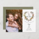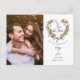 Detta eleganta foto spara datum-kort har ditt foto och en vacker blommig krans som omsluter ditt skrivna meddelande om att spara datumet ovanför era namn, datum och lokal. Baksidan har ytterligare detaljer om datumet, inklusive er bröllopswebbplats. Designad av Thisisnotme©