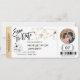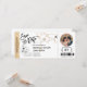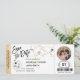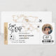 Destination Beach Bröllop Boarding Pass Biljett Guld Plan Spara datum med hjärta och flygplansikon med enkel minimalistisk linjekonst världskarta