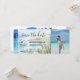 Destination Beach Bröllop Boardingpass Biljett Guld Plan Spara datum med akvarell palmstrand illustration, Mexiko eller annan tropisk plats. Lägg till ditt foto
