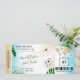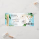 Destination Strandbröllop Boardingpass Biljett Guld Plan Spara datum med hjärta och flygplansikon med tropiska blad