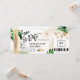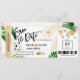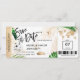 Destination Beach Bröllop Boardingpass Biljett Guld Flygplan Spara datum med Kryssningsfartyg ikon med tropiska blad