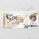 Destination Strand Bröllop Boardingpass Biljett Guld Plan Spara datum med hjärta och flygplansikon med tropiska blad. Lägg till ditt foto