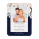Denna design har sparade datum magnet bröllop, elegant modern traditionell enkel, minimalistisk förlovning typografi lantlig, perfekt sommar magnetisk akvarell par, ladda upp ditt foto akvarell blommor, modern borste skrift bröllop inbjudan, modern lantlig bröllop, ett modernt skrift teckensnitt, med blomster enkel vintage ros peony, botanisk grönska lövverk vår med en marinblå bakgrund.