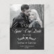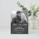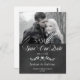 Chalkboard bilder är populärt, och det här är särskilt elegant. Ditt foto (svartvitt eller färg) finns överst, med söt skripttext som säger "Spara vårt datum" direkt nedanför. Du kan anpassa tre fält med ett hjärta och ett lager med löv-snurrbild som delare. Kortets baksida har gott om utrymme för anpassningsbarnas text i svart och grått.