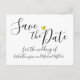 En snyggt, enkel och modern "Spara datum"-design med manuskript (handskrivet teckensnitt stil), med bilden av ett litet faux guld-hjärta... och med anpassningsbar linjer av text..