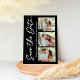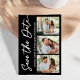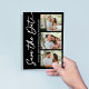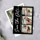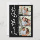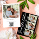 Denna design har en Spara datum, bröllopskort med en modern minimalistisk stil, en 4-foto collage, i svart och vitt, en enkel, typografisk design, med unik, kalligrafisk skrift och en skannbar QR-kod för att dela din bröllopsinformation.