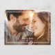 Meddela din kommande bröllopsdag med vårt moderna och enkla rädda datum-fotopostkort. Designen visar ditt favorit engagemangsfoto i en dubbel vit ram i vitt. Rädda datum och er bröllopsdag står med vit text och skrivstil längst ner på ert fotografi. Baksidan av kortet har en enkel modern mall i vitt med trendig guldbokstavsstil och visar era namn och ytterligare detaljer, inklusive er returadress och webbplats eller annan anpassad text. För bästa resultat, ersätt malltexten med din information och följ instruktionerna i mallområdet. Om du behöver hjälp med detta eller någon av våra designer, skicka e-post till invitationsuites@gmail.com. Anpassade förfrågningar tas tacksamt emot.