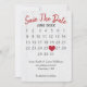 "spara datum"-kalender med rött hjärta på rustik vitlaserad lada träbakgrund för kommande bröllop.