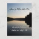 Spara datum bröllopskort med en vacker bild av en fridfull sjö vid solnedgång, helt anpassningsbara med dina bröllopsdetaljer.