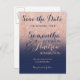 Chic falskt rosa guld glitter marinblå Bröllopsinbjudan Samling. Skicka ditt spara datum-kort med detta rosa guld glitter marinblå ombre-tema bröllop med modern, original och enkel falskt rosa guld glitter på en helt anpassningsbar marinblå färgbakgrund. Perfekt för chic, elegant tema bröllop