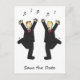 Två brudgummar i matchande kostymer dansar, och orden 'Spara datum'. Bilden är inställd mot en vit bakgrund. Ett vackert 'Spara datum'-kort för alla gay- äktenskap eller registrerat partnerskap firande.