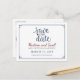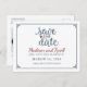 "Spara datum" - Dusty Blue & Mörk Red Meddelande Vykort