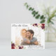 Skicka fotot och spara vykorten med rosa, burgundi och vin så att dina gäster får veta att de vill stänga av ditt bröllop-datum. Ordalydelsen är helt anpassade - om du behöver ändra teckensnittet, teckensnittet färg, storleka eller placeringen av textrutorna klickar du bara på knappen "Klicka för att anpassa ytterligare" för att ändra saken. Du kan enkelt ta bort tackmeddelandet innan du lägger till listan i din kundvagn om du föredrar att skriva en handskriven anteckning. Se till att kontrollera vårt stora urval av samordnande element genom att bläddra i uppsamlingen Marsala Blommigt Bröllop!