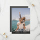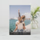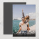 Detta moderna fotobrevkort för att spara datumet har ditt speciella foto överlagt med ett elegant manus för att spara datumet ovanför era namn, datum och lokal i vit text. Designad av Thisisnotme©