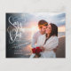Detta enkla, eleganta skript fotobrev för att spara datumet har ditt foto och ett vackert skript ovanför era namn, datum och plats. Baksidan visar er bröllopsinformation och en QR-kod till er bröllopswebbplats. Designad av Thisisnotme©