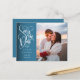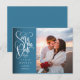 Detta eleganta vita skript fotografera spara datum-kort har ditt speciella foto och ett dekorativt skript spara datum ovanför era namn, datum och lokal. Du kan anpassa färgen på baksidan eller lägga till ett meddelande. Designad av Thisisnotme©