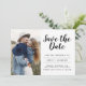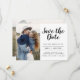 Minimalistiskt foto med modern och Elegant sparar Bröllop-vykortet. Datuminbjudan innehåller en modern handskriven skripttypografi med en chic och enkel design som du kan lägga till ditt anpassade förlovning-fotografi bild till.