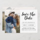 Minimalistiskt foto med modern och Elegant sparar Bröllop-vykortet. Datuminbjudan innehåller en modern handskriven skripttypografi med en chic och enkel design som du kan lägga till ditt anpassade förlovning-fotografi bild till.