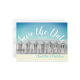 Spara datum engelska strandhydda sjöside vykort i blått och gult.