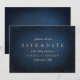Faux guld glitter på mörkens blå bakgrund och det sofistikerade parets monogram på baksidan, enkelt och elegant. underbart spara datumkorten för vintage bröllop, det moderna klassiska bröllop och det formella bröllop. Visa alla matchande delar i samlingen.