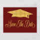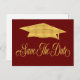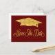 Skicka ut detta eleganta och klassiska svarta examenskort med falskt guld till din familj och vänner. Graduation Save The Date-kort modern och enkel design med en examensmössa. Ändra den röda färgen till din skolas färg.