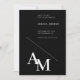 Minimalistisk och modern beskriver den här snyggten när du sparar datumkortet. Med fet typografi som har den första initialerna av bruden och brudgummen är detta idealiskt för en contemporary bröllop. Baksidan är svart, framsidan är svart med vit text.