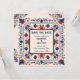 Boho chic spara datum-kort, blommig geometrisk, boho folkkonst stil, röd, vit och blå.