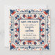 Spara datum, folkkonst blommig, röd vit och blå inbjudningar