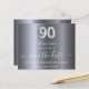 En elegant Spara datumkortet i 90 födelsedagsfester. En modern faux-metalliskt tittar bakgrund i silver. Anpassa och lägg till datum och namn/ålder. Texten: Spara datumet skrivs med ett stort trendig-handskript i stil. Nummer 90 med ett stil-teckensnitt med ballong.