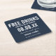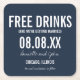 Fria drycker, marinblått bröllop spara datum underlägg i en modern typografi som lyder "Fria drycker (och vi är gifta sig)". Anpassa till plats och datum för namn, bröllop.