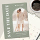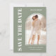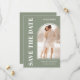 Det här moderna Spara datumkortet innehåller en snyggt-ljusbildmall och contemporary-typografi på en grönt. Anpassade enkelt med ditt foto och information.