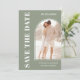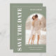 Det här moderna Spara datumkortet innehåller en snyggt-ljusbildmall och contemporary-typografi på en grönt. Anpassade enkelt med ditt foto och information.