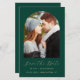 Den här enkla, minimalistiska Spara datumkortet innehåller en fotobåge ovanför orden "Spara datum" i handskriftsskriptet elegant guld-färgad, följt av parets namn, bröllop datum och stad i sans serif-teckensnitt på en framskjuten grönt. Lägg till ett mer detaljerat meddelande med ytterligare information på baksidan, tillsammans med en QR-kod som dina gäster kan använda att besöka bröllop webbplats.