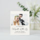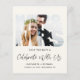 Chic budgetvänlig lätt gräddning eller privat tillkännagivande av bröllop och mottagande av spara datum meddelande efter bröllopet. Framsidan visar ditt foto i ett "Mr & Mrs" ram, "Celebrate With US" i ett modernt skript, och ditt namn, mottagningsdatum och plats i enkel typografi. På baksidan anpassar du ditt datum och lägger till namnen i ett namnteckning skript.
