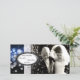 Copyright 2012 Pam's Designs. Spara datumet för bröllop med det här mörk blått, silver, svarta och vita ljusa ljus-fotokortet. Anpassa den här designen med ditt favoritfoto. Den här designen har en ljus globalisering med ett genomskinligt band av lodrät och en fantastisk oval ram, försedd med elegant och löv.