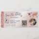 Boardingkortet Biljett Guld Flygplan vid destinationsbäckenet Spara datumet med hjärta och flygplan med världskartan glitter ro guld. Lägg till din bild och qr-kod