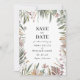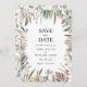 Elegant Botaniskt spara datumet. Med en snyggt som är utformad för handmålade vattenfärger dammiga ro och persikoblommor, vackra blommor av mauve och rosa samt vackra sage och teracotta botaniska ämnen, sammanför dessa eleganter en palett av tropiska destinationsbröllop-färg som är vackert placerad i en sparat datumet och modern rik. Perfekt för par som tittar för ett enkelt men snyggt sätt att markera sin speciella dag, dessa spara-aktuella meddelanden kommer säkerligen att göra er bröllopsdag oförglömlig.