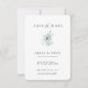 Modern vinter botaniska bukett, spara datumkortet. Elegant och enkel typografi. Baksidan av färg, som visas i frostiskt dammblått, kan anpassas.