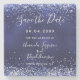 Ett trendig Spara det datum som underlägg för gästerna. En marin blå bakgrund med faux glitter damm. Den blå färg är ojämn. Anpassa och lägg till bröllop-datum, namn och ställe.
